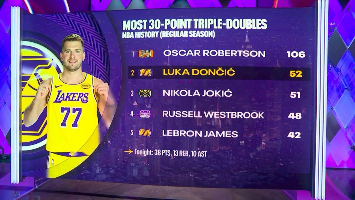 东契奇38+13+10创NBA历史第2神迹
