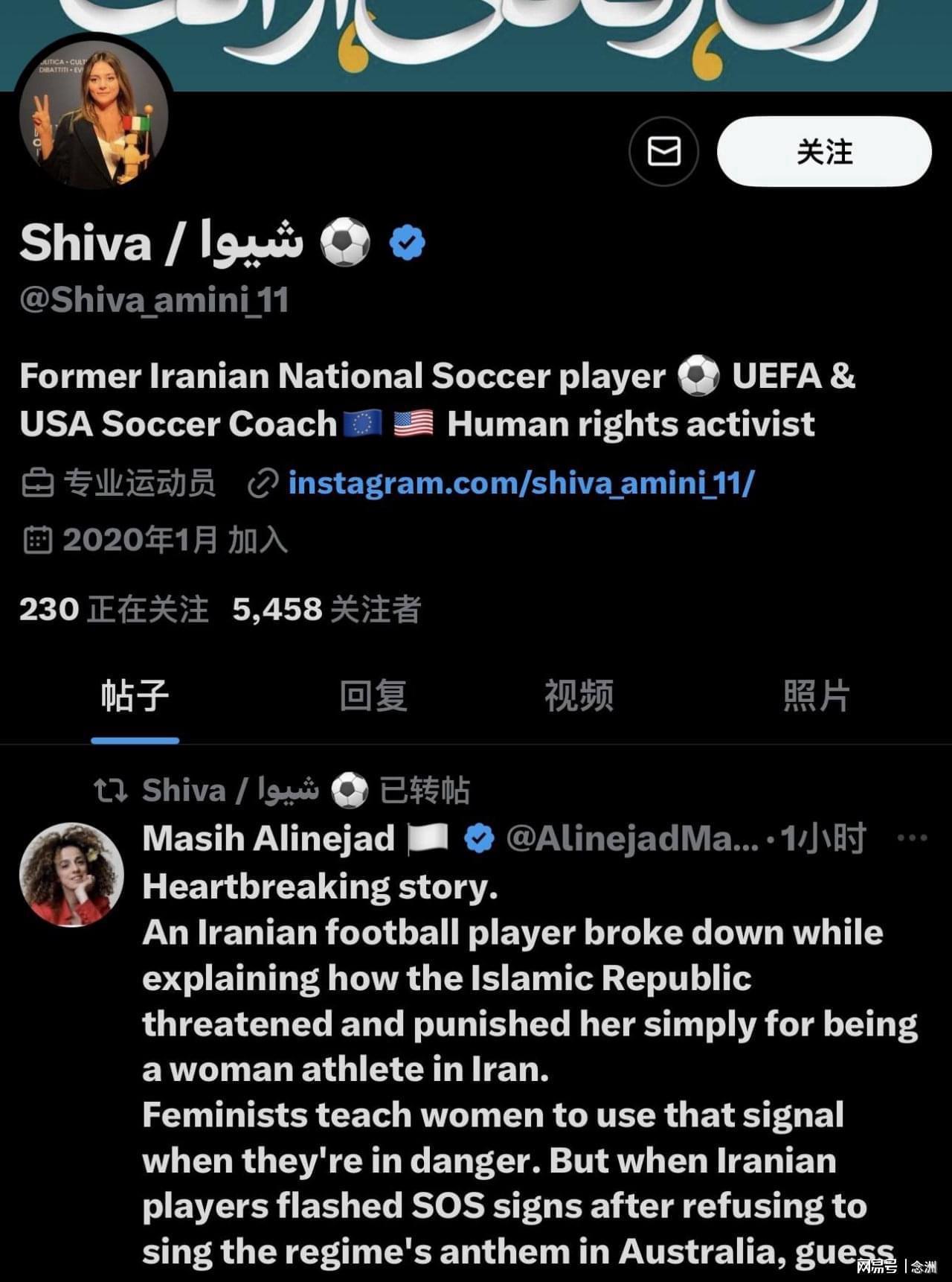 此事引起全世界的关注,美国福克斯新闻采访了希娃-阿米尼。从其个人简介来看,阿米尼曾是伊朗女足国家队的队员,现在是欧足联和美国足协的一名教练。